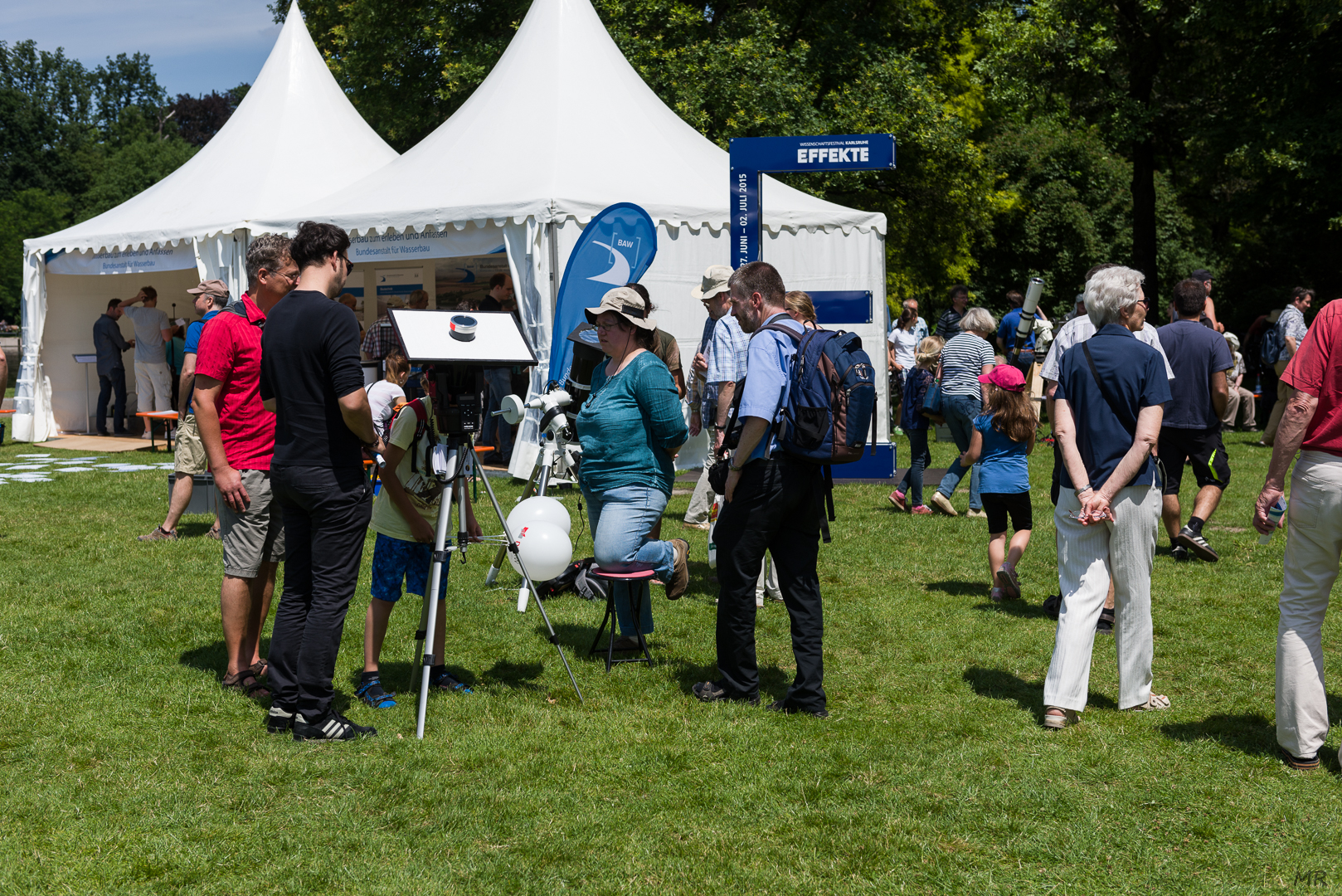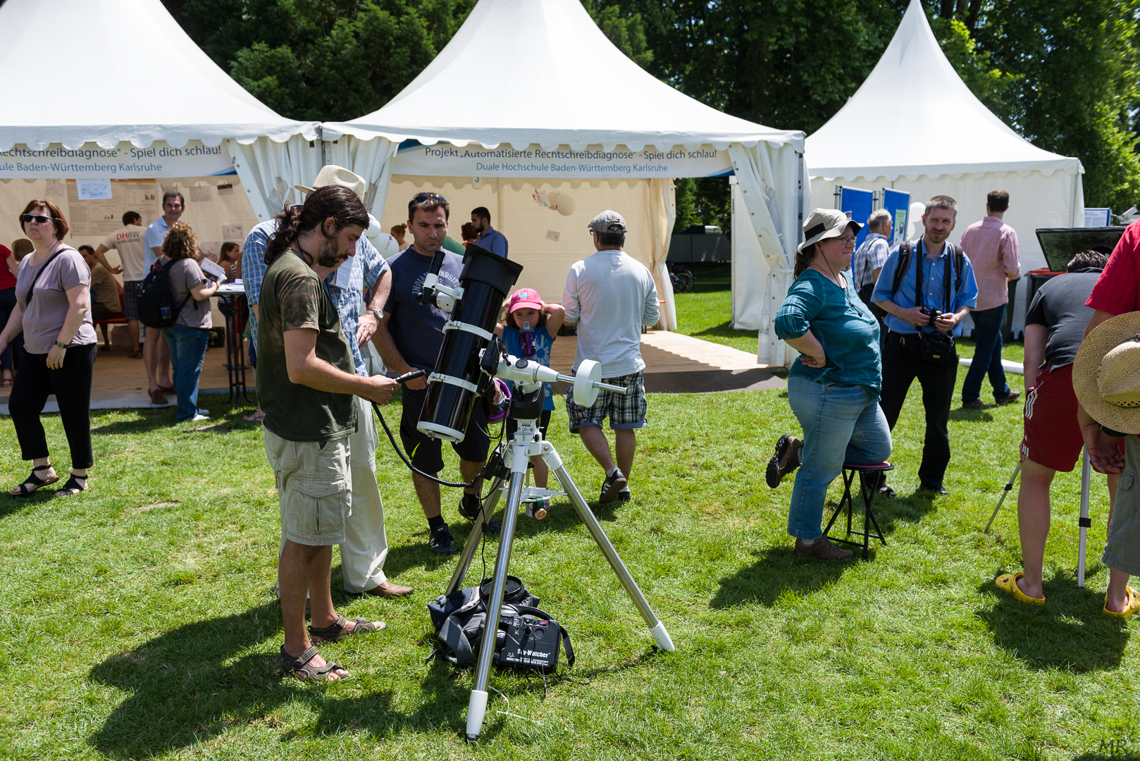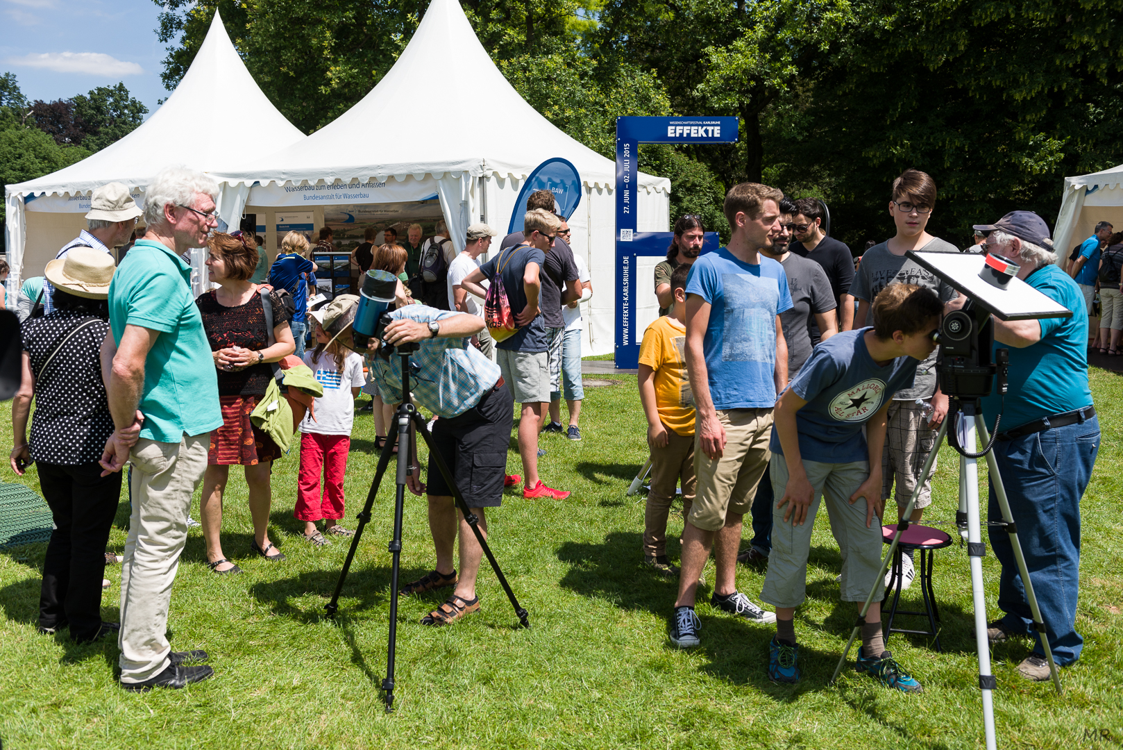 "Zukunft der Stadt – Stadt der Zukunft" – unter diesem Motto verwandelt das Wissenschaftsfestival EFFEKTE, welches in diesem Jahr anlässlich des 300. Geburtstags Karlsruhes stattfindet, die ganze Stadt in ein riesiges Experimentierfeld. Auch die AVKa beteiligte sich daran mit einer öffentlichen Sonnenbeobachtung im Schlossgarten.
