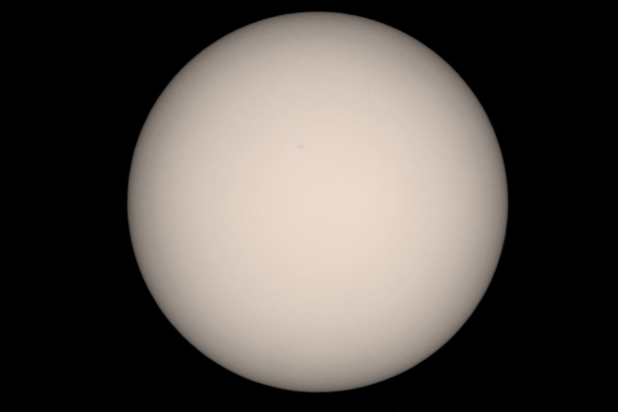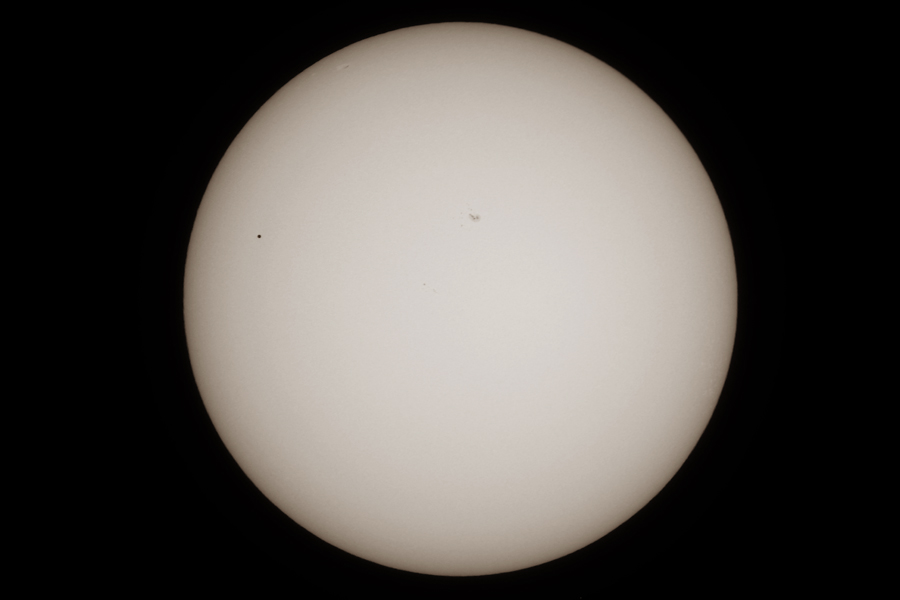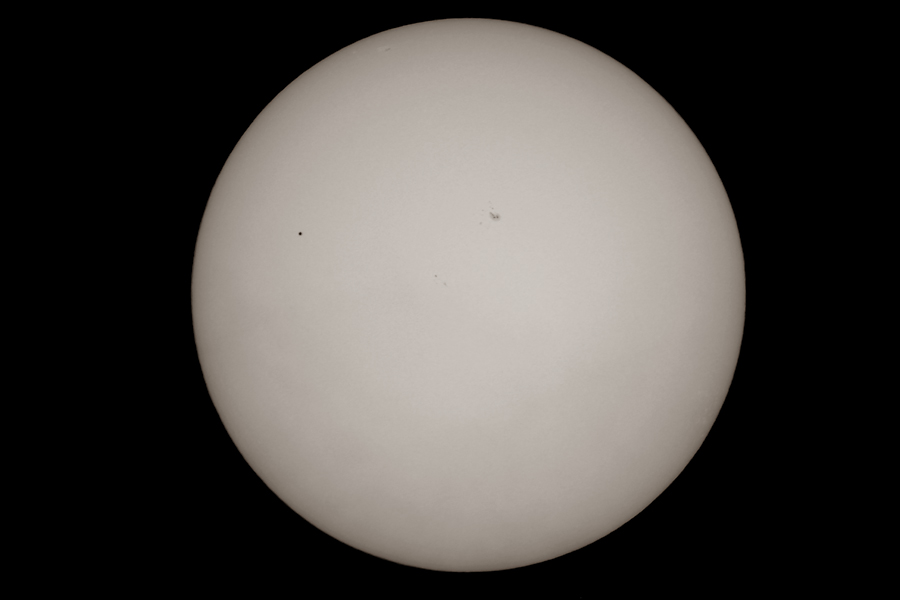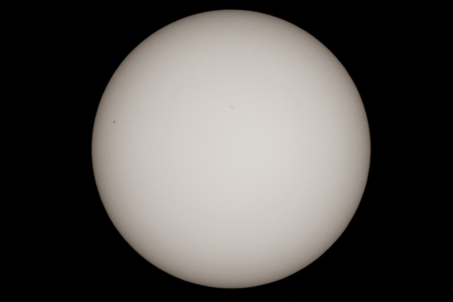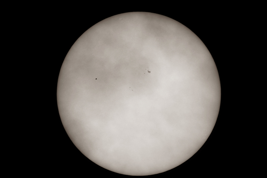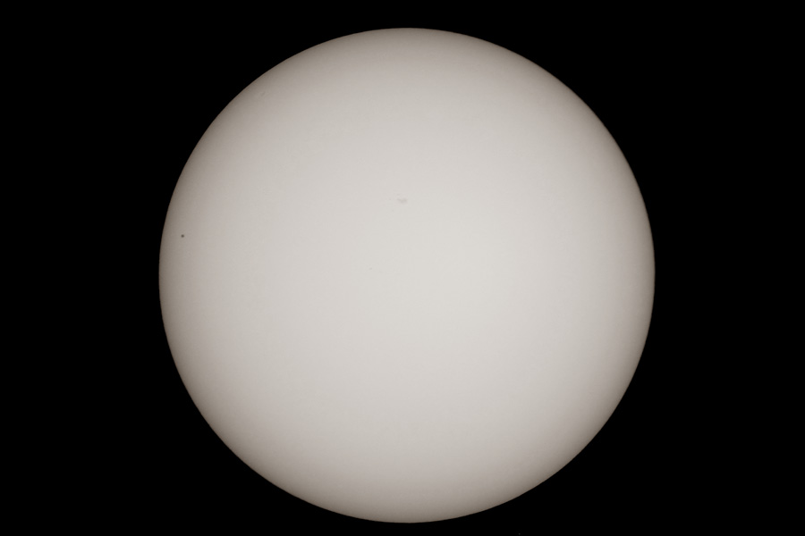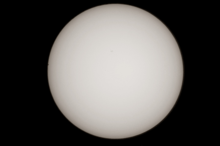 13:00 - Erste Testaufnahme durchs Teleskop - leider sehr starke Luftunruhe, selbst der große Sonnenfleck kommt nur schwach.