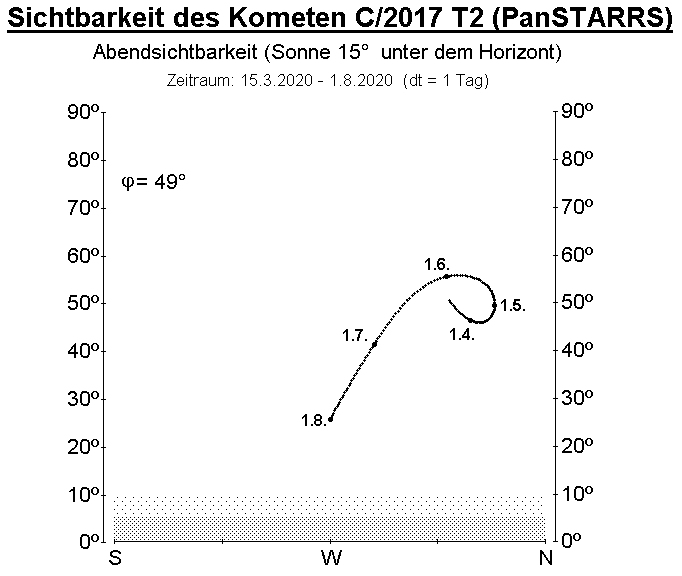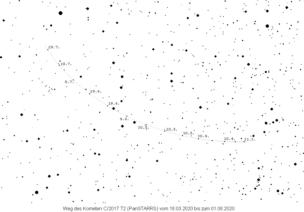 Dieser bereits im Herbst 2017 entdeckte Komet passiert Anfang Mai 2020 sein Perihel und kann von Spezialisten in den nächsten Wochen sogar im Fernglas aufgefunden werden (Details finden sich in der Datei Info_AVKa_8.pdf).