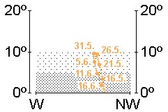 Im Nordwesten gehen eben die Zwillinge - mit den helleren Sternen Castor und Pollux - und der Fuhrmann - mit der hellen Capella - unter. Auffällig sind beide Sternbilder nicht mehr. Der westliche Himmelsbereich wird vom Frühlings-Dreieck dominiert, gebildet aus Regulus im Löwen, Arktur im Bärenhüter und Spica in der Jungfrau. Während der Bärenhüter mit dem orangefarbenen Arktur noch hoch am Himmel und die Jungfrau - mit der bläulichen Spica - ebenfalls noch in bequemer Horizonthöhe steht, scheint es, als ob sich der Löwe zum Sprung auf den Horizont bereit macht. Schon recht horizontnah steht das kleine, aber markante Sternbild Rabe, während das schwache Sternbild Haar der Berenice mit dem im Fernglas auffälligen offenen Sternhaufen Melotte 111 noch in bequemer Höhe zu finden ist.