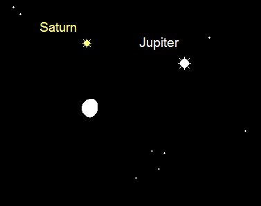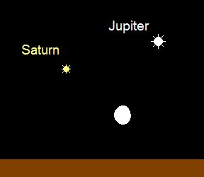 steht nur etwa 5° östlich von Jupiter und weist somit nahezu die gleichen Aufgangszeiten auf wie dieser. Der 0.3m helle Ringplanet bewegt sich rückläufig im westlichen Teil des Sternbilds Steinbock und erreicht gegen Monatsende fast die Grenze zum Sternbild Schütze. Am Morgen des 9. Juni findet man den Mond 3.5° unterhalb des Ringplaneten. Im Teleskop zeigt sich der immer noch weit geöffnete Ring mit einem Durchmesser von 41“, das Planetenscheibchen misst 18“.
