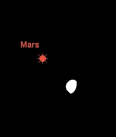 bremst seine rechtläufige Bewegung durch das Sternbild Fische im August stark ab, was die bevorstehende Oppositionsschleife andeutet. Entsprechend nimmt die Helligkeit im Verlauf des Monats von –1.1m auf –1.8m deutlich zu. Die Aufgänge verlagern sich von 23:45 MESZ auf 22:00 MESZ, womit der Rote Planet bereits vor Mitternacht zu einem Hingucker wird. Am späten Morgenhimmel des 9. August befindet sich der Mond 3° rechts unterhalb von Mars. Im Teleskop präsentiert der Planet ein Scheibchen, das gegen Monatsende einen Durchmesser von 18.8“ erreicht. Nunmehr können – sofern es die Luft zulässt – zahlreiche der feinen Albedostrukturen erkannt werden; die abschmelzende Südpolkappe sollte ein auffälliges Detail sein.