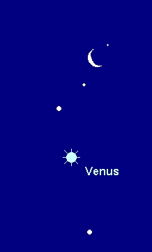 erreicht am 13. August ihre größte westliche Elongation (46°) und zum Monatsende die größte Horizonthöhe während dieser Morgensichtbarkeit. Ihre Helligkeit geht leicht von –4.5m auf –4.3m zurück, doch ist sie damit weiterhin DAS strahlende Objekt des Morgenhimmels. Venus wechselt am 13. August vom Sternbild Stier ins Sternbild Zwillinge, wobei sie zuvor noch die nördlichsten Bereiche des Sternbilds Orion tangiert. Die Aufgänge verlagern sich im Laufe des Monats von 1:45 MESZ auf 2:45 MESZ. Am 15. August findet man die abnehmende Mondsichel 5° oberhalb der Venus. Im Teleskop präsentiert der Planet zu Beginn des Monats eine 27“ große, 43% beleuchtete breite Sichel, die zu Monatsende zu einer 20“ großen, zu 59% beleuchteten „Halbvenus“ geworden ist.
