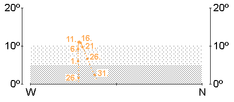 steht den gesamten Monat der Sonne zu nahe, um ihn beobachten zu können.