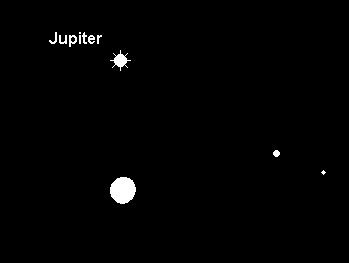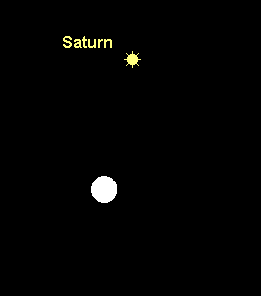 bewegt sich rückläufig durch das Sternbild Wassermann und nähert sich seiner Opposition, die er Mitte August erreichen wird. Dies macht sich an seiner Helligkeit bemerkbar, die im Juli von –2.6m auf –2.8m ansteigt. Jupiter geht zu Monatsbeginn gegen Mitternacht, am Monatsende gegen 22:00 MESZ auf. Der Äquatordurchmesser des Planetenscheibchens wächst von 45.3“ auf 48.4“ an, was zu teleskopischen Beobachtungen einlädt. Da wir dieses Jahr auf die Ebene der Mondbahnen blicken, kommt es zu gegenseitigen Bedeckungen und Verfinsterungen der Jupitermonde, die ab 20cm Öffnung verfolgt werden können. Leider fallen diese für Karlsruhe unspektakulär aus. So wird am 4. Juli zwischen 2:06:19 und 2:10:00 MESZ das Scheibchen von Io von Ganymed bis zu 10% seines Durchmessers verfinstert. Am 7. Juli kommt es zwischen 2:47:13 und 2:49:03 MESZ zu einer marginalen Verfinsterung von Europa durch Io; der Io-Schatten dringt nur 3% des Durchmessers von Europa vor. Und am 9. Juli wird Europa durch Io zwischen 2:05:54 und 2:07:19 MESZ bis zu 2% verfinstert. Am Morgen des 26. Juli findet man den fast vollen Mond 5° unterhalb des Gasplaneten.