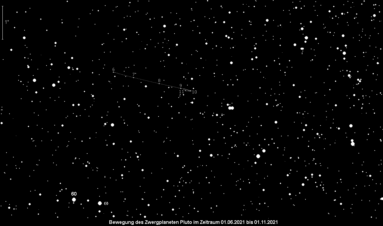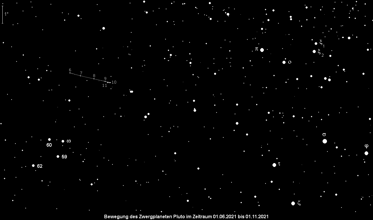 steht am Abend des 17. Juli in Opposition zur Sonne. Allerdings erreicht der im östlichen Teil des Sternbilds Schütze positionierte Zwergplanet lediglich eine Helligkeit von 14.3m, so dass mindestens ein Teleskop von 30cm Durchmesser für eine Identifikation erforderlich ist. Die nachfolgenden Aufsuchkarten sollen hierbei behilflich sein.