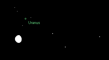 bewegt sich rückläufig im Sternbild Widder, leider weitab markanter Sterne. Der 5.7m helle Planet ist ein einfaches Fernglasobjekt. Mittlerweile kann er bereits am späteren Abendhimmel aufgesucht werden. Sein Aufgang findet am Monatsbeginn um 22:15 MESZ, am Monatsende bereits um 20:15 MESZ statt. Beobachtbar wird Uranus etwa eine Stunde später. Am 24. September steht der Mond 2.5° links unterhalb des grünlichen Planeten. Im Teleskop kann nun das 3.7“ große Scheibchen ab 100x ausgemacht werden.