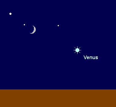 wandert durch die südlichsten Ekliptikbereiche, gewinnt aber dennoch ein wenig an Höhe, so dass sie im November am besten während dieser Abendsichtbarkeit beobachtbar ist. Den ganzen Monat über geht sie kurz vor 19:00 MEZ unter. Bei ihrer Wanderung durch das Sternbild Schütze passiert sie am 19. November den hellsten Stern, Nunki, in nur 0.2° südlichem Abstand. Ihre Helligkeit steigert die Venus von –4.5m auf –4.9m, und kann damit selbst am Taghimmel gesichtet werden. Im Teleskop kann eine breite Sichel beobachtet werden, deren Durchmesser von 26“ auf 39“ anwächst, während der Beleuchtungsgrad von 48% auf 30% abnimmt. Am 8. November findet man die Mondsichel 6° links oberhalb des hellen Planeten.