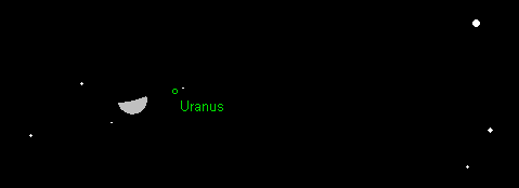 kann von Spezialisten noch in der ersten Monatshälfte gesichtet werden, bevor er der Sonne zu nahe steht. Die Suche nach dem 7.9m hellen Planeten sollte gegen Ende der nautischen Dämmerung (gegen 18:45 MEZ) erfolgen, wenn Neptun noch mehr als 10° über dem westlichen Horizont steht. Am Abend des 3. Februar könnte die Mondsichel eine Aufsuchhilfe sein, die 6° unterhalb des fernen Planeten steht.