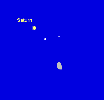 wird zu einem auffälligen Objekt am Morgenhimmel. Die Saturnaufgänge verlagern sich von 3:45 MESZ auf 2:00 MESZ. Die rechtläufige Bewegung des im östlichen Teil des Sternbilds Steinbock positionierten Ringplaneten wird im Monatsverlauf immer langsamer, was schön an delta Cap verfolgt werden kann. Die Saturnhelligkeit steigt auf 0.7m leicht an. Am 22. Mai findet man den Halbmond 5° rechts unterhalb des Ringplaneten. Teleskopische Beobachtungen könnten sich bereits lohnen. Das Saturnscheibchen weist einen scheinbaren Durchmesser von 17“ auf, der nur noch um 12° zur Erde geneigte Ring von 38x8“.