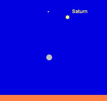 steht am 14. August in Opposition zur Sonne. Damit geht er bei Sonnenuntergang im Südosten auf, kulminiert gegen 1:30 MESZ im Süden und geht bei Sonnenaufgang im Südwesten unter. Der 0.3m helle Ringplanet bewegt sich rückläufig durch den Ostteil des Sternbilds Steinbock. Leider steht er mit einer maximalen Höhe von lediglich 26° ziemlich tief, so dass der Beobachter mit einer unruhigen Luft zu kämpfen hat. Dennoch sollte man einen Blick auf den um 14° zur Erde geneigten Ring werfen, der einen Längsdurchmesser von 42.4“ erreicht. Die Saturnkugel, welche dieses Jahr den Ring wieder überragt, misst 18.8“. Daneben können in kleineren Instrumenten bis zu fünf Saturnmonde beobachtet werden. Titan, der größte Mond weist eine Helligkeit von 8.4m auf, Rhea, der nächstinnere Mond, von 9.8m. Noch näher am Ring können Dione (10.5m) und Tethys (10.3m) gesichtet werden. Dagegen bewegt sich Japetus weit außerhalb der Titanbahn. Im August finden wir ihn südwestlich von Saturn, wobei er mit 10.5m seine maximale Helligkeit aufweist. Unser Mond passiert den Ringplaneten am 12. August. Bei Dämmerungsbeginn steht der untergehende Vollmond 5° unterhalb des Ringplaneten.