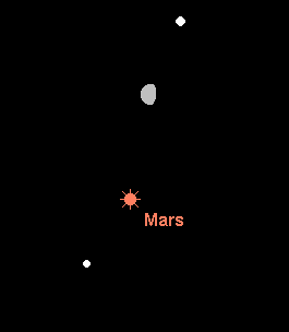 wird am 30. Oktober stationär und bewegt sich danach rückläufig durch das Sternbild Stier. Damit beginnt seine Oppositionsphase. Seine Helligkeit steigt von –0.6m auf –1.2m deutlich an. Nur noch Sirius und Jupiter übertreffen ihn an Glanz. Die Aufgänge verfrühen sich im Monatsverlauf von 22:00 MESZ auf 19:15 MEZ. Am Morgen des 15. Oktober findet man den Mond 3° oberhalb des Roten Planeten. Im Teleskop zeigt sich Mars zunehmend detailreicher. Das Marsscheibchen wächst von 12.0“ auf 15.0“ an, der beleuchtete Anteil von 88% auf 93%.