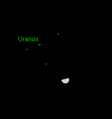 wird am 23. Januar stationär und bewegt sich anschließend wieder rechtläufig durch das Sternbild Widder. Der 5.7m helle Planet verlagert seine Untergänge von 3:45 MEZ auf 2:00 MEZ, wobei er etwa eine Stunde zuvor unsichtbar wird. Die Meridianpassage (beste Beobachtungszeit) verschiebt sich von 20:30 MEZ auf 18:30 MEZ, d.h. gegen Monatsende erfolgt diese bereits in der Dämmerung. In der Nacht vom 1. auf den 2. Januar passiert der Mond den fernen Planeten. Gegen Mitternacht steht Uranus lediglich 3‘ vom südlichen Mondrand entfernt. Am 28./29. Januar steht der Mond kurz vor seinem Untergang 2.5° rechts unterhalb von Uranus. Im Teleskop zeigt sich das grünliche, 3.7“ große Uranusscheibchen ab etwa 100-facher Vergrößerung deutlich. Besitzer mittelgroßer Instrumente können sich auch an den größten Uranusmonden Titania (13.8m) und Oberon (14.1m) versuchen, die sich nie weiter als etwa 30“ bzw. 40“ vom Uranusscheibchen entfernen.