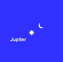 ist Planet am Morgenhimmel und leuchtet mit –2.2m auffällig im Osten. Er bewegt sich rechtläufig im Sternbild Widder und gewinnt rasch an Höhe. Seine Aufgänge verlagern sich von 4:00 MESZ auf 2:15 MESZ. Am Morgen des 14. Juni steht die Mondsichel nur 1.5° rechts oberhalb des Gasplaneten. Ab der Monatsmitte dürften teleskopische Beobachtungen erfolgreich sein. Der Äquatordurchmesser wächst im Monatsverlauf von 34.4“ auf 36.5“ an.
