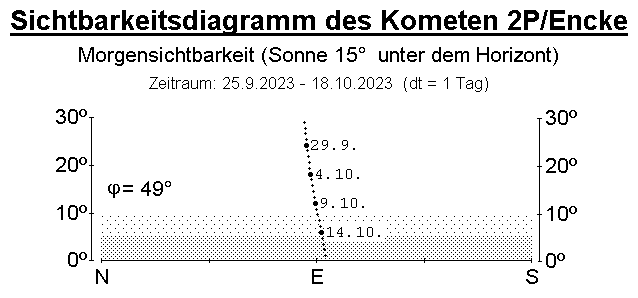 Von Ende September bis Mitte Oktober kann der altbekannte periodische Komet 2P/Encke mit kleineren Instrumenten am Morgenhimmel beobachtet werden. Details entnehme man dem AVKa-Beobachterinfo Nr. 12.