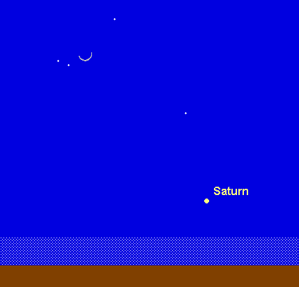 kann nur noch in der ersten Monatsdekade tief über dem südwestlichen Abendhorizont ausgemacht werden. Danach endet die aktuelle Sichtbarkeit. Der 1.0m helle Ringplanet sollte in der helleren Dämmerung aufgesucht werden, da er zu Monatsbeginn bereits um 19:15 MEZ, am 10. Februar gar schon um 18:45 MEZ untergeht. Möglicherweise kann am Abend des 11. Februar die schmale Mondsichel eine Hilfe sein. Sie steht allerdings 9° links oberhalb des horizontnahen Ringplaneten. Am 28. Februar steht Saturn schließlich in Konjunktion mit der Sonne.