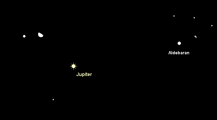 ist das strahlende Objekt der zweiten Nachthälfte. Im Monatsverlauf steigert der rechtläufig durch das Sternbild Stier wandernde Riesenplanet seine Helligkeit von –2.3m auf –2.5m. Er geht immer früher auf. Steigt er Anfang September um 23:45 MESZ über die Horizontlinie, so können wir ihn Ende September bereits kurz nach 22:00 MESZ knapp über dem nordöstlichen Horizont erkennen. Am späten Abend des 23. Septembers finden wir den abnehmenden Mond 5° links oberhalb von Jupiter. Im Teleskop ist der Gasplanet bereits ein faszinierendes Objekt mit seiner reich strukturierten Atmosphäre und den ständig wechselnden Positionen der vier Jupitermonde sowie deren Erscheinungen (Bedeckungen, Verfinsterungen, Durchgänge, Schattenvorübergänge). Der Äquatordurchmesser des ovalen Planetenscheibchens wächst im Monatsverlauf von 38.4“ auf 42.2“ an.