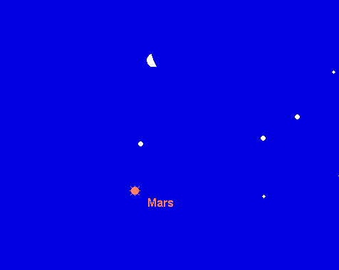 wird zum auffälligen Gestirn der zweiten Nachthälfte. Seine Helligkeit steigt im Monatsverlauf von 0.7m auf 0.5m leicht an. Er verlässt am 5. September das Sternbild Stier und wechselt in das Sternbild Zwillinge, wobei er am 8. September den offenen Sternhaufen M 35 in 0.9° südlichem Abstand passiert. Am Morgen des 25. September steht der Mond 6° oberhalb von Mars. Der Rote Planet geht zu Monatsbeginn gegen 0:30 MESZ, am Monatsende gegen 23:45 MESZ auf. Teleskopisch gibt Mars noch nicht viel her. Der Durchmesser des Planetenscheibchens wächst lediglich von 6.5“ auf 7.5“ an.