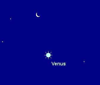 ist das beherrschende Objekt am Morgenhimmel. Wenn auch ihre Helligkeit im Monatsverlauf von –4.4m auf –4.1m zurückgeht, so steht sie bereits kurz nach ihrem Aufgang unübersehbar am Osthimmel. Dieser verlagert sich von 3:45 MESZ am Monatsersten auf 3:00 MESZ zu Monatsende. Am 1. Juni erreicht Venus ihre größte westliche Elongation von der Sonne mit knapp 46°. Venus bewegt sich anfangs durch das Sternbild Fische, tritt am 10. Juni ins Sternbild Widder und bereits am 28. Juni ins Sternbild Stier. Am 22. Juni finden wir die Venus 6° unterhalb der Mondsichel. Im Teleskop zeigt die Venus am 1. Juni eine Halbphase bei einem Scheibchendurchmesser von 24“. Bis zum Monatsende ist der Durchmesser auf 18“ zurückgegangen, während der Beleuchtungsgrad auf 64% angewachsen ist.