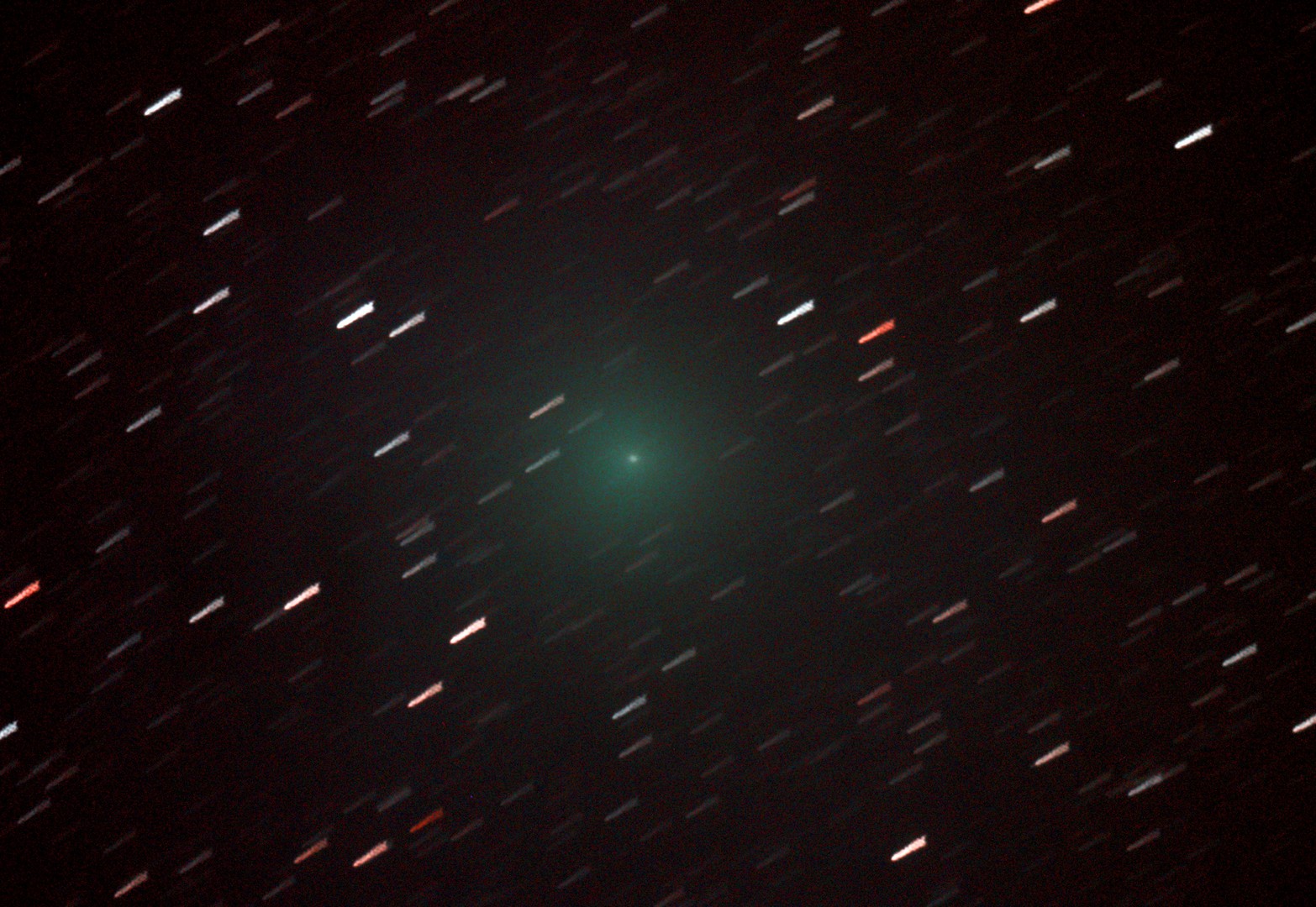 Ich habe die kleine Spur erst gesehen, als ich auf die Sterne entwickelt habe. Auf den Komet gehalten war es noch schwieriger. Fitswork hat die paar Photonen fast nicht wahrhaben wollen.