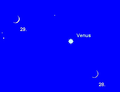28.: Erste Sichtung am Abendhimmel möglich (gegen 17:30 MEZ)