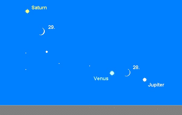 28.: Erste Sichtung am Abendhimmel möglich (gegen 17:15 MEZ)