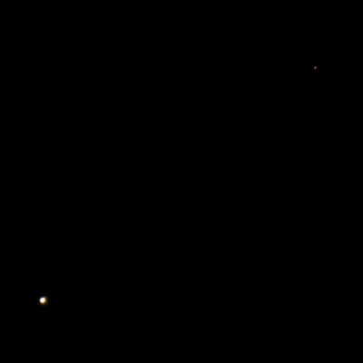 Im kleinen Fernrohr waren Venus und Mars zeitgleich im Bildfeld zu sehen. Mars nahe seiner oberen Konjunktion war mit etwa 4" kaum als Scheibchen auszumachen, auch Venus war mit ca. 12" noch weit von ihrer maximalen scheinbaren Durchmesser entfernt.