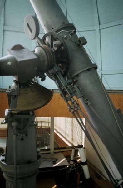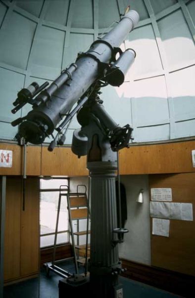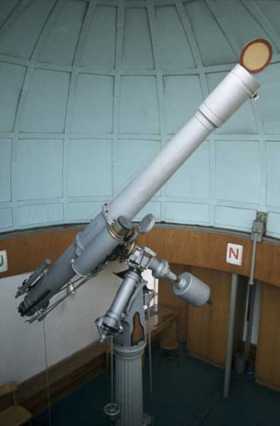 Unser Fernrohr ist ein historischer Refraktor von 1885 mit neuer Optik (siehe Geschichte). Bei Bedarf stehen weitere Instrumente zur Beobachtung zur Verfügung.
